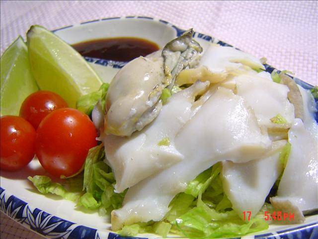 所以,將刷洗乾淨的鮑魚及生蠔用熱水川燙即可!!