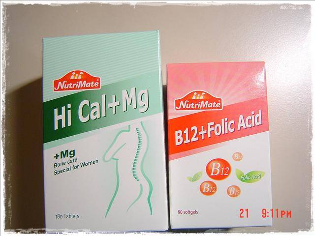 今天買了孕期初期的營養品~你滋美得"葉酸&B12"及"鈣+鎂"