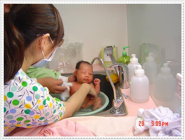 以下是我們離開月子中心的前一晚上baby洗澡課